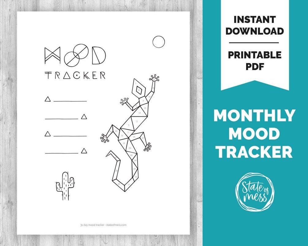 Lizard Monthly Mood Tracker, Geometric Animal Collection